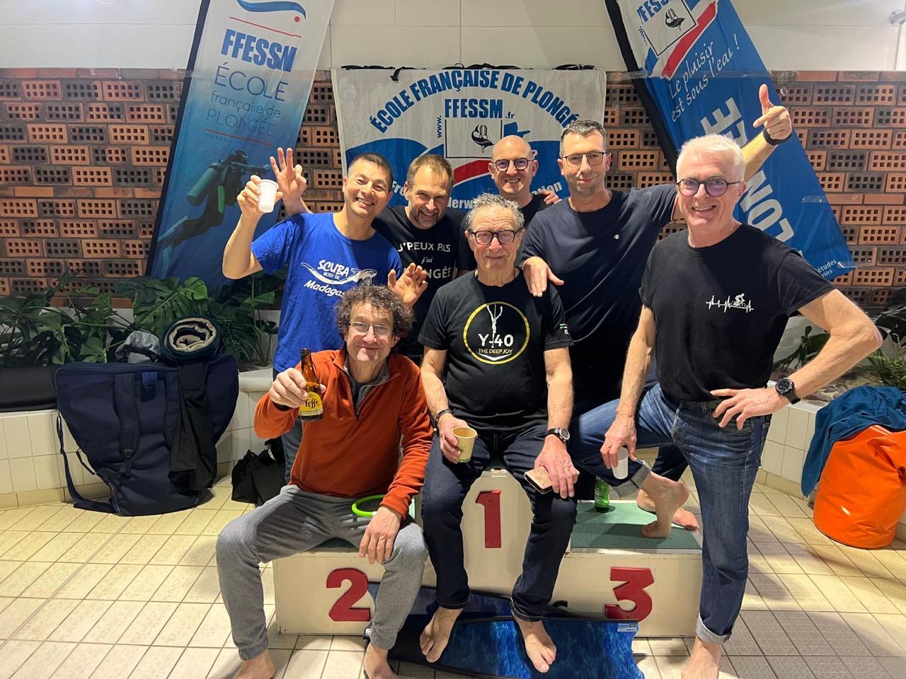 6 compétiteurs, 1 juge-arbitre et 1 coach se sont imposés à Pont Audemer lors d’une compétition d’apnée !
